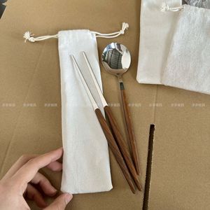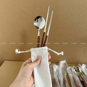 Ins風ステンレス食器プラスチックハンドルはレトロ木目ステーキナイフフォークスプーン家庭用パスタフォークスプーン
