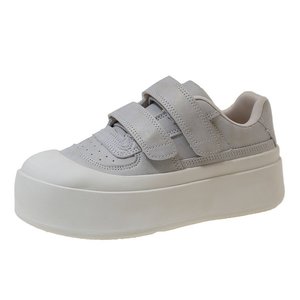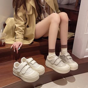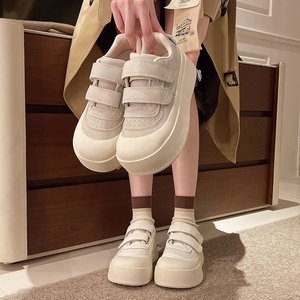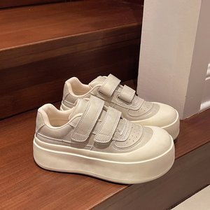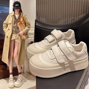 白い靴の女性靴2025春の新型の通気性のカジュアルシューズのマジックは厚い底の大きい靴を貼って高くなります。