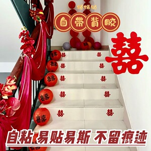 バックゴム階段喜字貼り結婚家電正赤色階段自己接着喜字不乾性ゴム喜植毛布その他