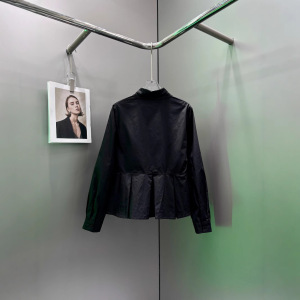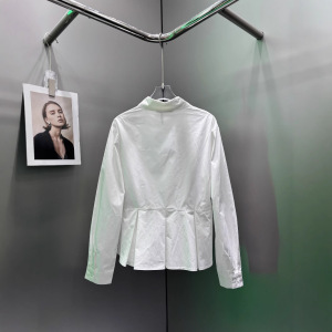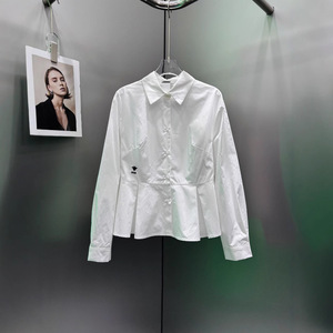 25春夏の新型シンプルなハチの刺繍は襟を返して腰のしわのレースのシャツの女性のタイプを収めます。