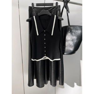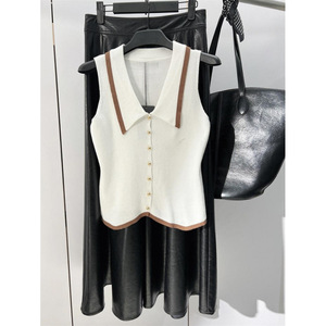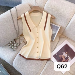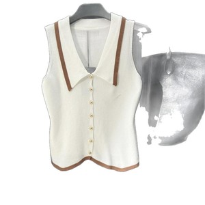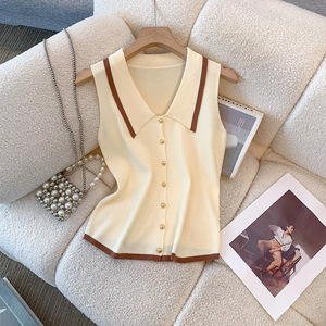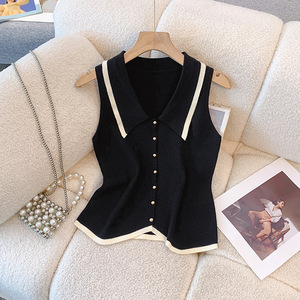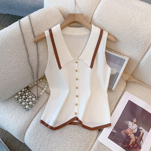 新款法式翻领针织无袖背心女外穿夏季设计感显瘦短款POLO上衣潮