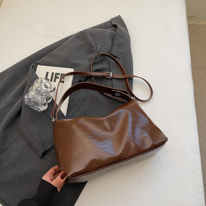 爆発的な柔らかい皮の腋の下のバッグの女性2025大容量の怠惰な風がシンプルなバッグを持っています