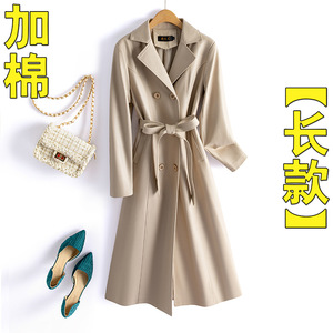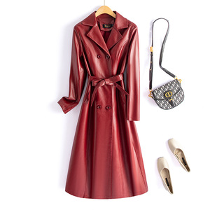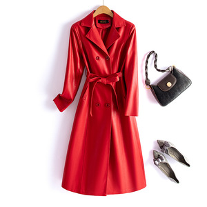 2025年春秋新商品の海寧皮衣女性の中の長さの皮のコートのひもは身を修めてやせている風衣を現します。