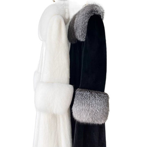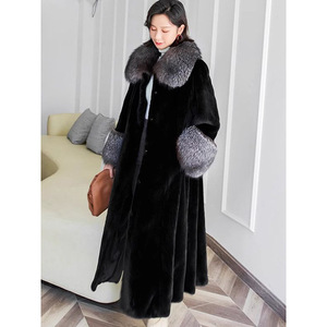 欧米の外国貿易の婦人服の新型は狐の毛の襟の長い型をまねてミンクの皮のコートの女性をまねてミンクの皮のコートのファッションをまねます。
