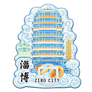 山東省淄博市鐘書閣八達局木製金属磁気観光記念品ランドマーク建築都市冷蔵庫マグネット