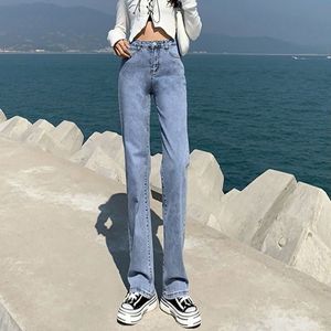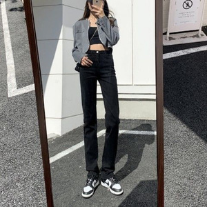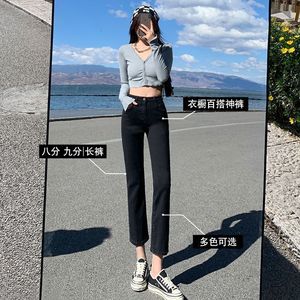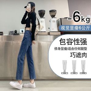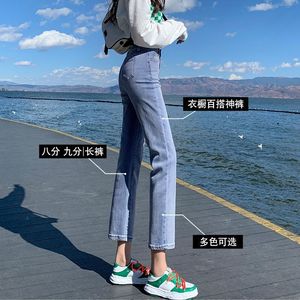 七八九分の背の低い直筒ジーパンの女性のファッションは夏の薄い新型の高腰でやせているタバコのズボンを見せます。
