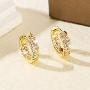 アマゾンクロスボーダー新商品豪華気質銅にジルコニウムを入れた幾何学的な円形耳ボタンヒップホップの流行耳輪メーカー卸売り