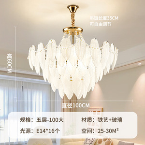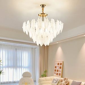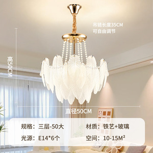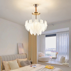フランスクリーム風シャンデリア軽豪華羽毛真珠客間灯飾りネット赤創意大気主寝室レストラン照明
