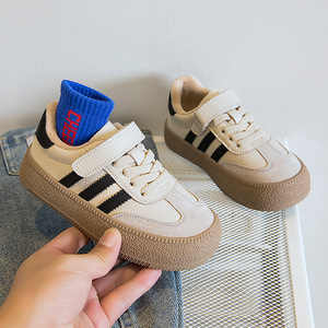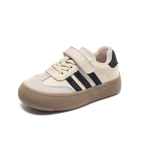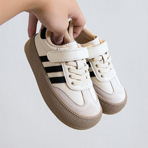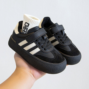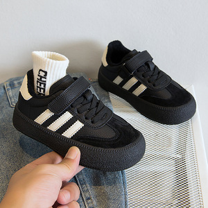 子供の靴の春の新型の白黒の運動靴の中で大きいマジックはレジャーのランニング靴の女の子の男の子の板の靴を貼ります。
