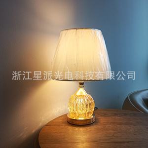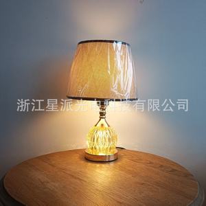 ヨーロッパ式の暖かい金色のガラスの布芸の電気スタンドの客間の書斎の装飾の置物の明かりのロマンチックな雰囲気の置物の小さい夜の明かり