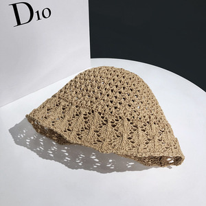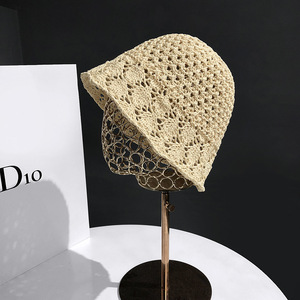 2025新型漁師帽子供夏の透かし編み麦わら帽子日焼け止め顔バケツ帽子通気日除け盆帽