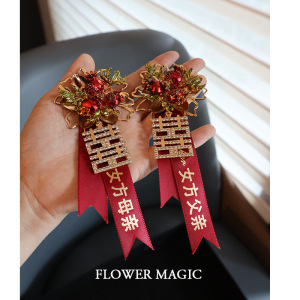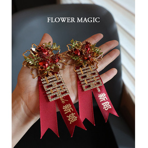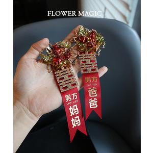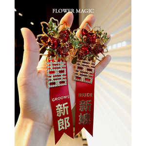 新商品中国式ドリル双喜ザクロ多子多福おめでたい赤い結婚式新郎新婦両親胸花