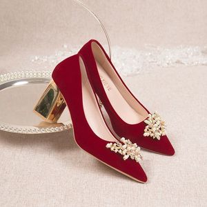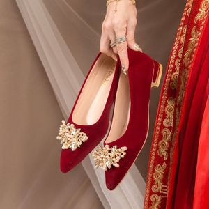 金歩康秀禾の花嫁の結婚靴春と秋の新型のワインの赤い太ヒールの結婚靴の女性の敬酒の宴会のハイヒールのウェディングドレス