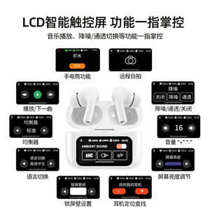 A9pro爆発金高配合五代華強北bluetoothイヤホンANC騒音低減長航続カラー画面タッチ無線イヤホン