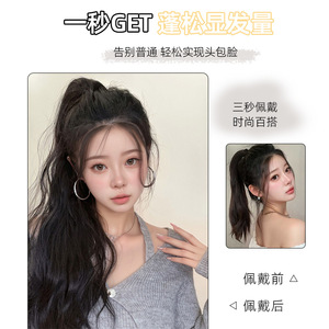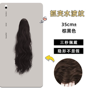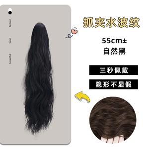 水の波紋の高い馬尾のかつらの女性はシミュレーションの髪をつかんでふわふわしています。