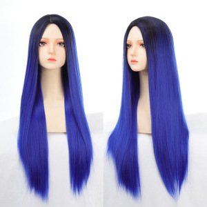 センター分けカチューシャ ストレートグラデーション - ブラック+ブルー 70cm
