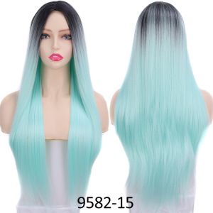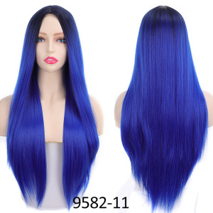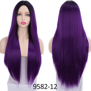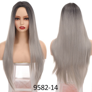 外国貿易用ウィッグ 女性用 グラデーションロングストレートヘア フルウィッグ 多色展開 センターピンストレートヘア 欧米風ウィッグ メーカー卸売