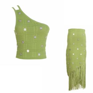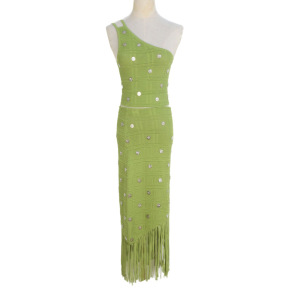 19258 女性用グリーンフレンチスタイルタッセルスカート