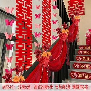 結婚式の階段手すり装飾布ガーゼシルクフラワーインターネット有名人の小紅書と同じスタイルの結婚式の部屋の装飾の長さのカスタマイズ