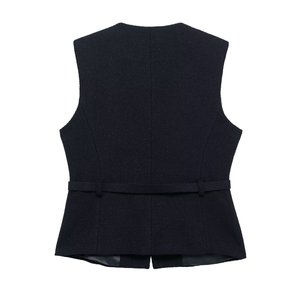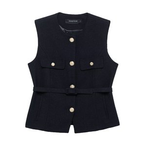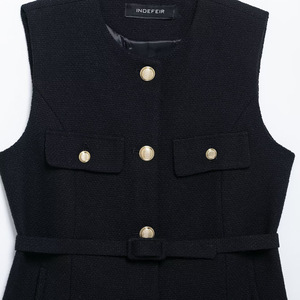 卸売り商品の対外貿易の婦人服の卸売りの欧米風の新型の丸首の単列は袖なしの木目のベストの女性を掛けます。