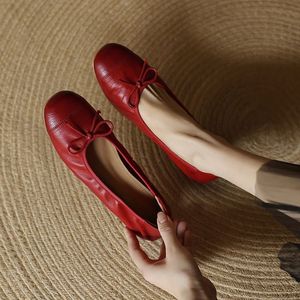 現物牛皮版 ~ 2025春の新型フレンチリボンの優しい風バレエの足で女性の靴を漕ぐ