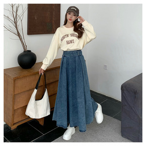 フランスのレトロな腰の高いデニムのスカートの女性の秋の新型のカジュアルでゆったりしていて、痩せています。