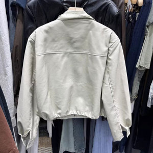 スタンドカラーのファスナーの気質puの皮の服のコート2025年の新型の復古のカジュアルな韓国版はやせている機関車の服の潮を現します。