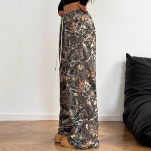 2025年アメリカンスタイルの若者向けファッションカジュアルパンツ、伸縮性ウエスト、迷彩柄、着痩せ効果、ワイドレッグ、フロアレングスパンツ