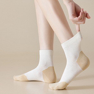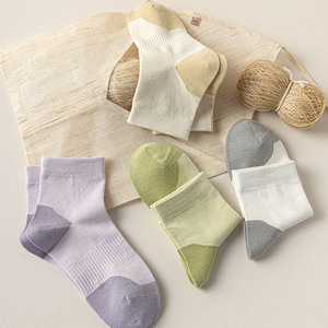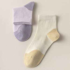 レディース麻混紡ソックス、ミドル丈、2025年四季対応、純粋な配色の綿ソックス、防臭、吸汗、ビジネス用、骨なし、通気性