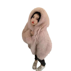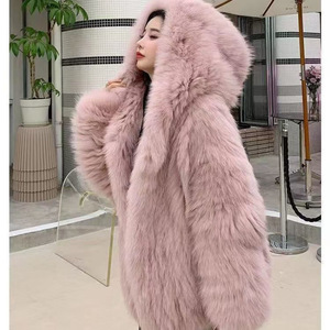 2025年冬新作、ゆったりとしたフォックスファー風コート、フード付き、上品なスタイル、トレンドのファーコート