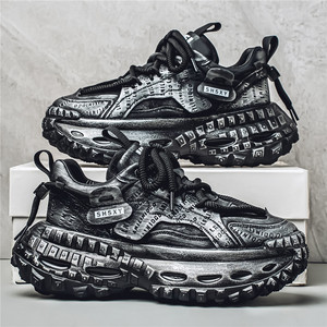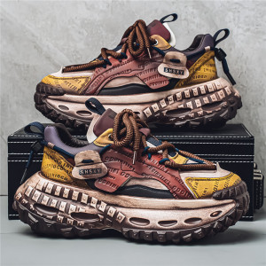 男の靴2025春の新型のお父さんの靴の男の金の厚い底は高くなります。