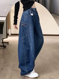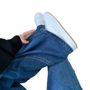 アメリカの高い街の街頭の曲がった刀のジーパンの女性の秋冬の復古のデザイン感はゆったりしていて、着痩せしています。