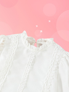 外国貿易のクロスボーダーの女性の中の大きい子供の8-12歳の春秋の純色のレースの花の縁の襟は袖の底のシャツの上着を緩めます。