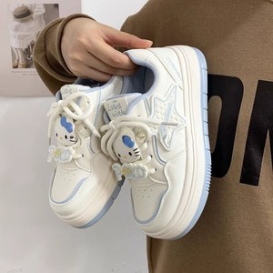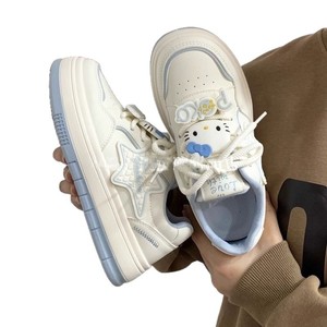 女の子のkt猫の低い靴のひも2025春秋の新型の滑り止めの厚い底の皮の靴の子供の運動靴のファッション