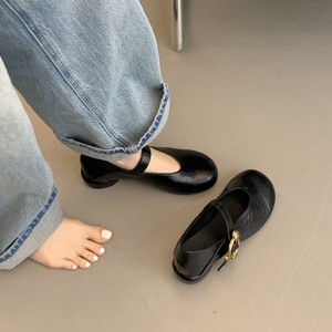 レトロなメアリー珍靴2025フランスの早春の新型超軟百合の丸い頭の太さと低いかかとの浅い靴
