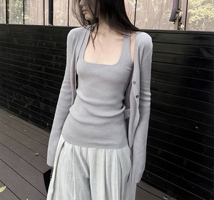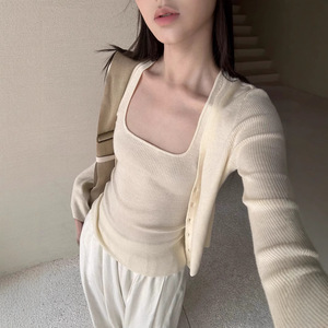 5werkweニットカーディガンジャケット女性秋冬長袖薄い首付きベスト紫デザイン感2点セット