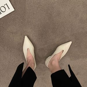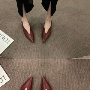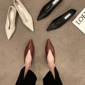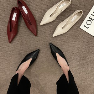 小衆のフランス式の尖った口の浅い靴の気質の復古2025新型の早春の低いヒールはやせている結婚靴の女性の靴を現します。