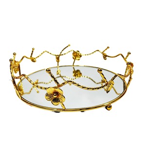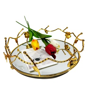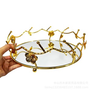 ラウンドメタルアイアンミラートレイフラワーデコレーションストレージトレイ北欧スタイル装飾品化粧品ティーセットディスプレイトレイ