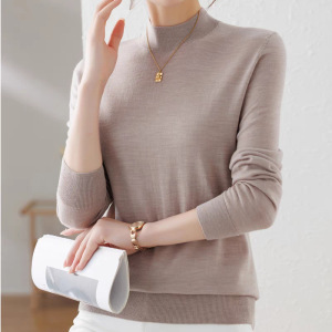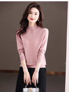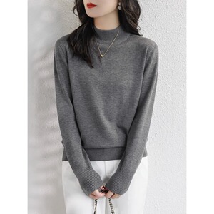 アンディの毛の半高襟の秋冬の大きいサイズの太っているMMのメリヤスの底のセーターの女性の長袖の百合のゆったりしている中襟の上着