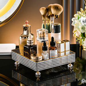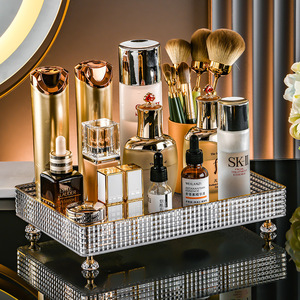 軽くて豪華なストライプの物置盤の浴室の物置棚の化粧台の透明な置物のコップの化粧品の収納箱