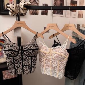 純欲百合は底の美背のガーターの女性のギャルを打って胸のクッションのベストを持って身を修めて痩せていますレースの胸の服の上着を塗ります。