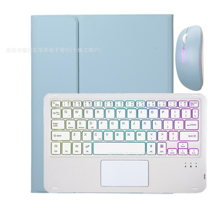 ホワイト RGB タッチ バックライト付きキーボード + ミスティ ブルー レザー ケース + ミスティ ブルー バックライト付き充電 Bluetooth マウス