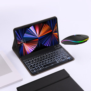 ミスティブルーのカラフルなバックライト付き通常キーボード + ミスティブルーのレザーケース + ミスティブルーのバックライト付き Bluetooth 充電マウス