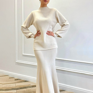 2025春の新型欧米アマゾン対外貿易クロスボーダー半高襟長袖ファッションカジュアルロングスカート2点セット女性