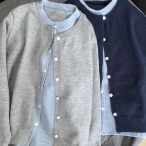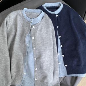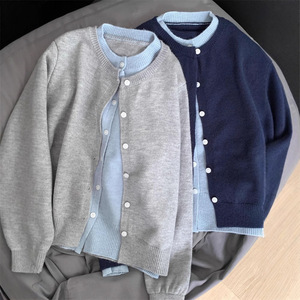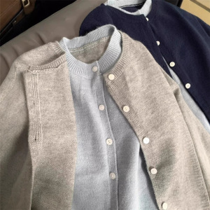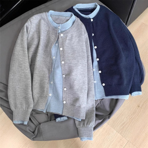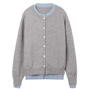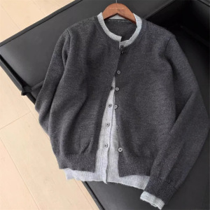 2025韓系chiは色をつなぎ合わせて偽の灰色のニットのカーディガンのコートの女性の秋の外でセーターの上着を掛けます。