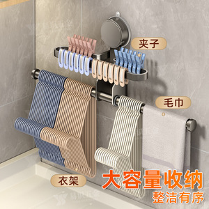 源工場吸盤ハンガー穴なしベランダ整理ハンガー収納多機能壁掛け式棚神器