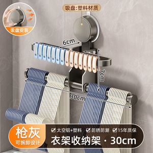 【強力吸盤】ハンガー収納ラック・30cm ガングレー