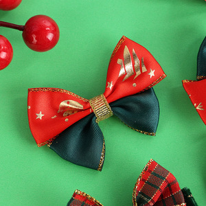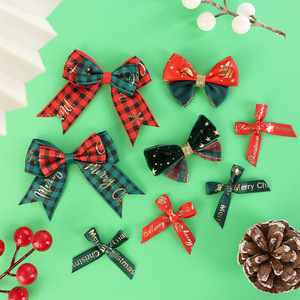 金のアルファベットのクリスマスの格子の蝶結びのクリスマスのギフトボックスの装飾の服装の頭飾りのリボンの蝶結びの補助材料DIY