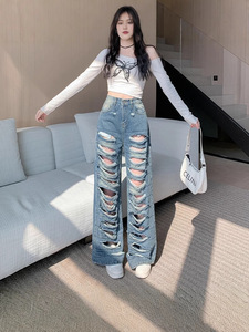 実写の個性は穴を割ってジーパンをつなぎ合わせます。