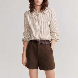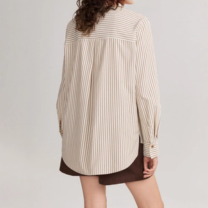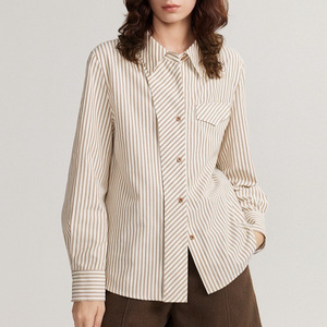 ELLEフレンチデザイン感ゆるいストライプ長袖シャツ女性2025春服新型通勤シンプル気質上着